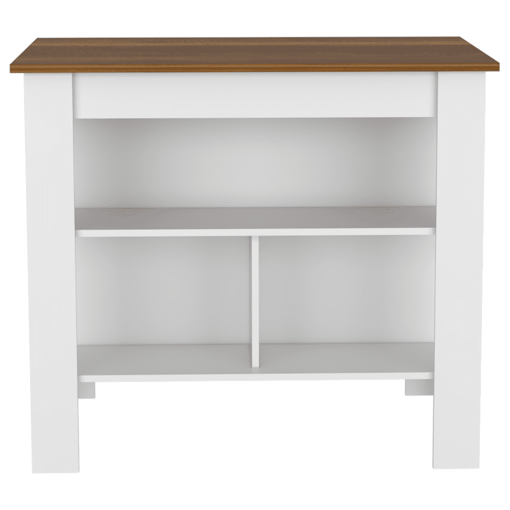 Kitchen Island features three wide low shelves perfect for storing all your kitchen items